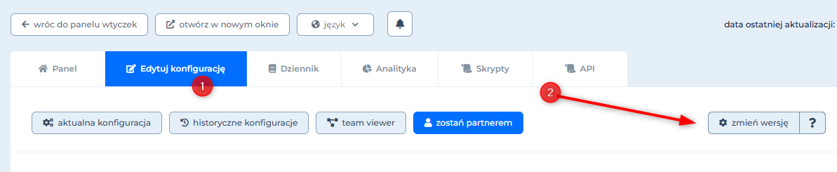 Zmiana wersji wtyczki:
