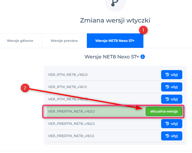 Aktualnie najwyższą wersją wtyczki jest VER_PRERTM_NET8_v163, zalecamy weryfikowanie czy w zakładach wersje główne/preview nie ma wersji wyższej niż 163.