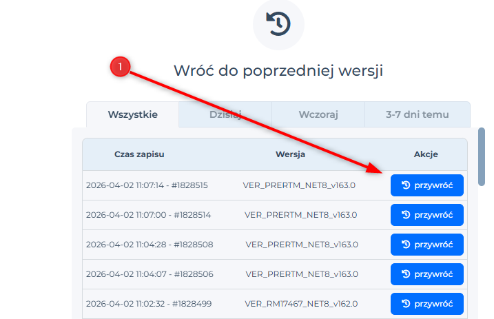 W razie problemów z działaniem wtyczki na nowszej wersji należy przywrócić poprzednią z panelu “historyczne konfiguracje” oraz zapisać scenariusz: