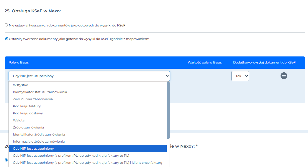 Podstawowym rozwiązaniem będzie oznaczenie dokumentu do KSeF w przypadku kiedy na zamówieniu źródłowym jest podany NIP niezależnie od kodu kraju na fakturze.