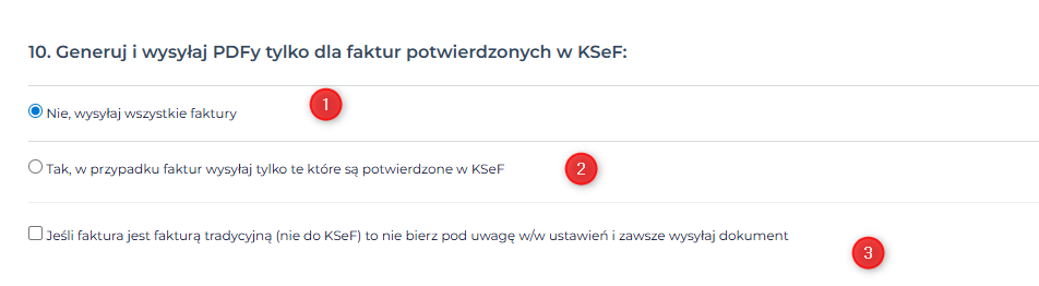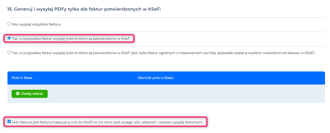 Wysyłaj wszystkie potwierdzone w KSeF e-faktury oraz jeżeli faktura jest tradycyjna to wyślij bez weryfikacji w KSeF